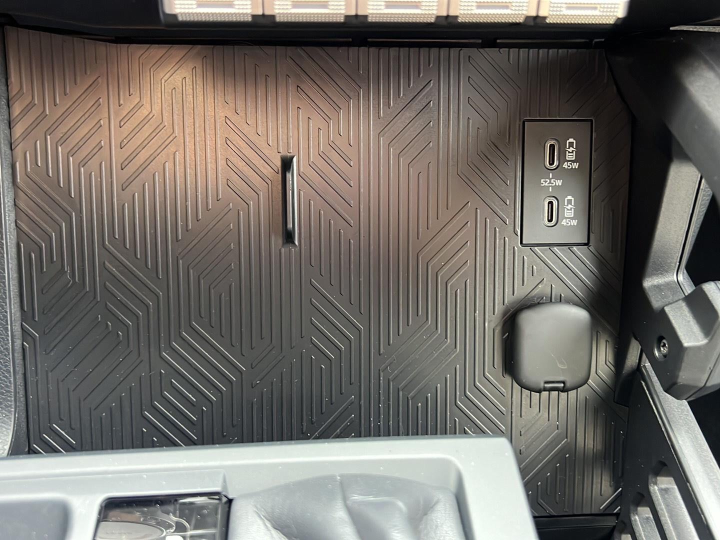Dual illuminated rear center console-mounted USB charging ports.